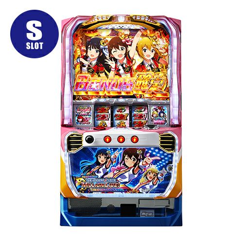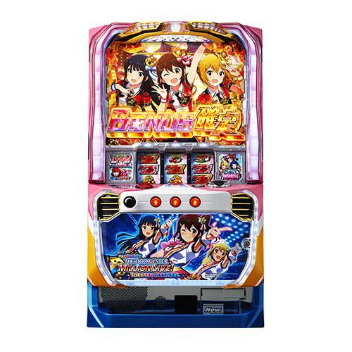 ビスティより、大人気アイドル育成ゲーム「アイドルマスター ミリオンライブ!」のタイアップ機として「パチスロ アイドルマスター ミリオンライブ!」が登場!元となったゲーム同様に最高に盛り上がるライブ感はそのままに、パチスロとしての面白さをミックスしたAT機だ。 本機のスペックは1ゲーム約0.3枚or約4.3枚純増のAT機で、状態により純増枚数が可変。通常時のゲーム性は、ポイントシステムとしてファン数を獲得し、CZに繋げ、ATを目指すルートが王道となる。撮影会発生で、大量のファン獲得のチャンス!? CZはAT当選期待度の異なる「劇場ライブ」「オンエアーゾーン」「ミリオンチャレンジ」「マスターチャレンジ」の4種類が存在。上位2つの「ミリオンチャレンジ」「マスターチャレンジ」はAT当選期待度50%超えで、突入時点でボーナス以上濃厚。成功と超成功で恩恵が異なるが、超成功で上位AT以上が濃厚となる。 AT「シアターフェスティバル」は初期ゲーム数50G+αで純増枚数は1ゲームあたり約0.3枚or約4.3枚。基本的な純増は低めだが、アピールタイムや疑似ボーナス中は純増約4.3枚に激増するので、これらを絡めて出玉を伸ばしていく。