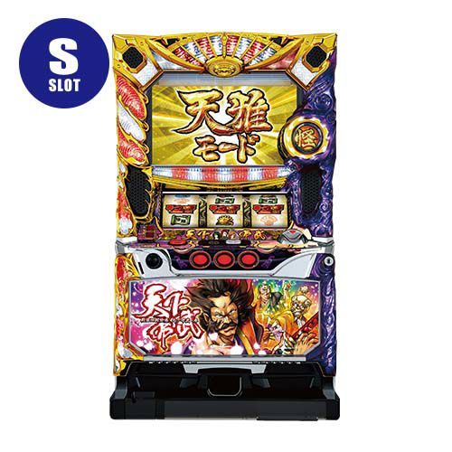 山佐の人気パチスロ「天下布武」シリーズの第3弾として「天下布武3」が登場! 約200枚獲得できるリアルボーナスとARTで出玉を増やす仕様のボーナス+ART機。基本仕様はARTの状態によってことなり、ART「覚醒」は1セット20G+α・1ゲーム約1.7枚純増のARTで、継続システムはセットストック+ゲーム数上乗せ型で、上位のART「天雅(テンガ)モード」を抽選。 ART「天雅モード」は1セット30G+αor130G+α・1ゲーム約1.7枚純増のARTで、継続システムはゲーム数上乗せ型となっている。通常時は、武将対応役成立によって各武将の自力解除ゾーン「布武チャレンジ」を抽選しており、CZ「布武チャレンジ」は武将毎にゲーム性が異なり、成功すればART「覚醒」が確定する。ART「覚醒」は毎ゲーム「天雅モード」突入を抽選を行っている。 上位ART「天雅モード」は、家紋玉全点灯で天雅モードゲーム数上乗せ特化ゾーン「真・天雅モード」突入のチャンスとなり、さらに真・天雅モード高確率ゾーンとなる「極・天雅モード」を搭載。本機はボーナスを2種類搭載しており、獲得枚数200枚固定の「天下ボーナス」の他に、フリーズすることで発生するプレミアムボーナス(1/32,768)として「決戦」を搭載している。